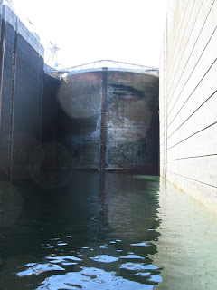 So here we go merrily marching into the lock. We secure our lines, and I snap a few pictures. Then the huge doors begin to close, with a big, deep, ominous 'boom' at the end.