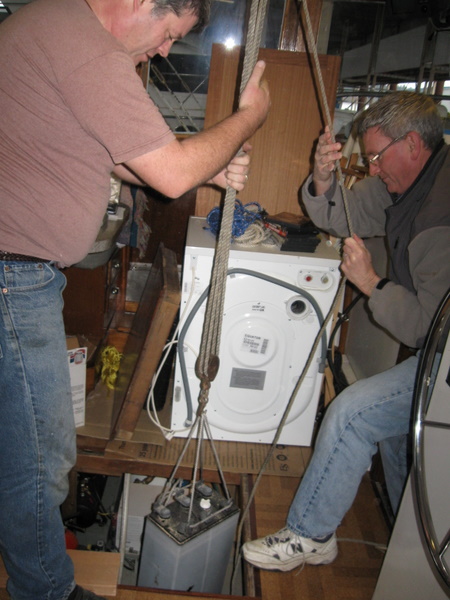 Al determined that moving the batteries to the lazarette would be best and has been busy building a new box and pulling wires in preparation. Again, my main duty was photographer, and gofer.